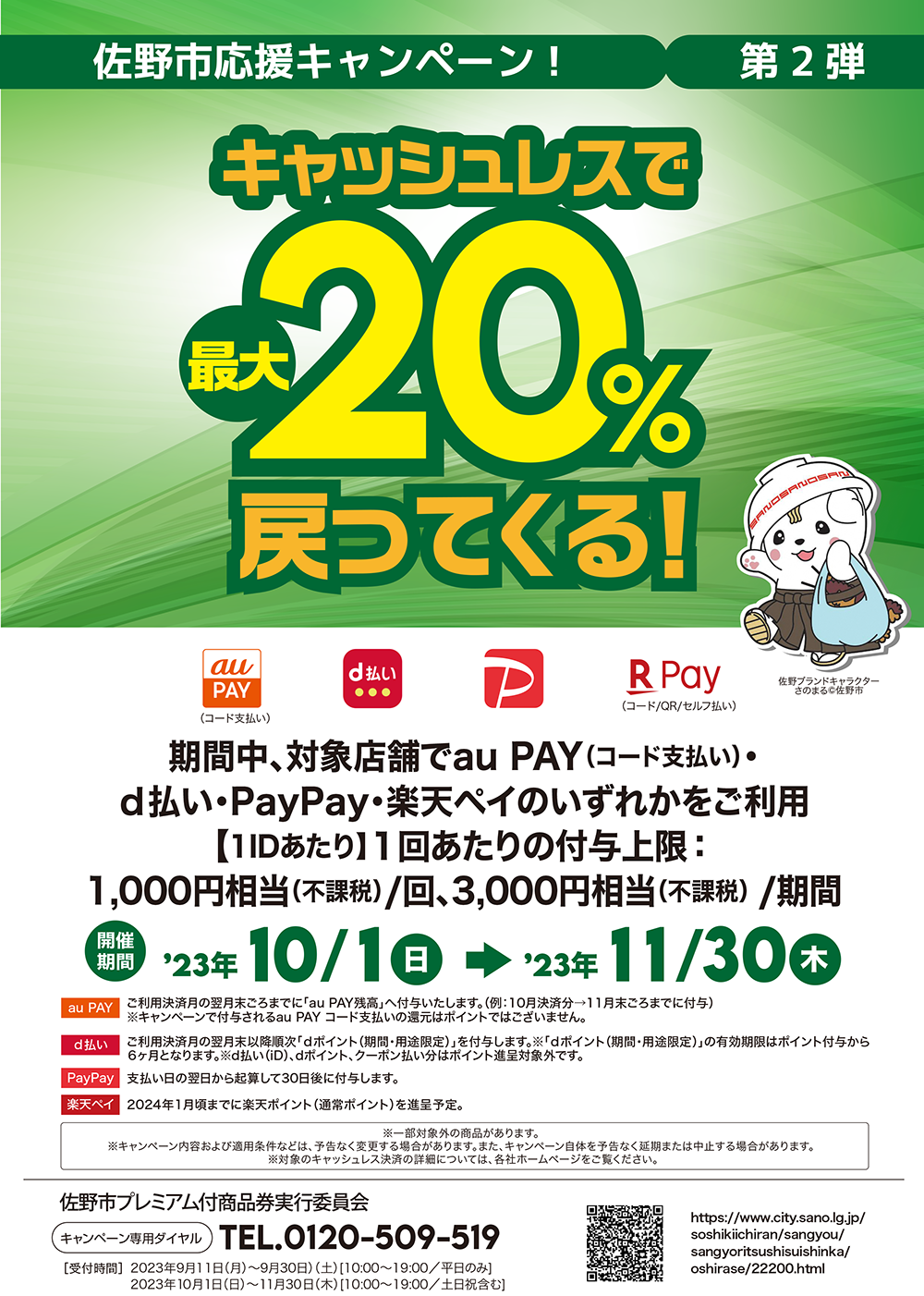 決済金額の最大20%分のポイントが返ってくるキャンペーンです!