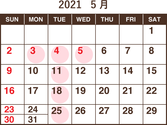 ※○のついた日がお休みとなります。