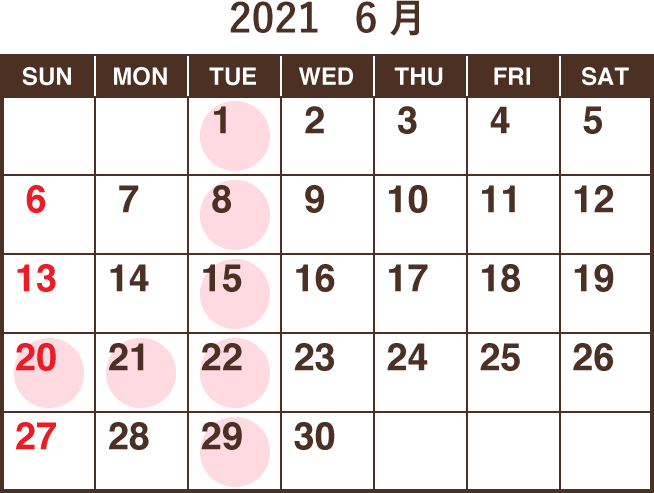 6月の定休日は以下のとおりです。